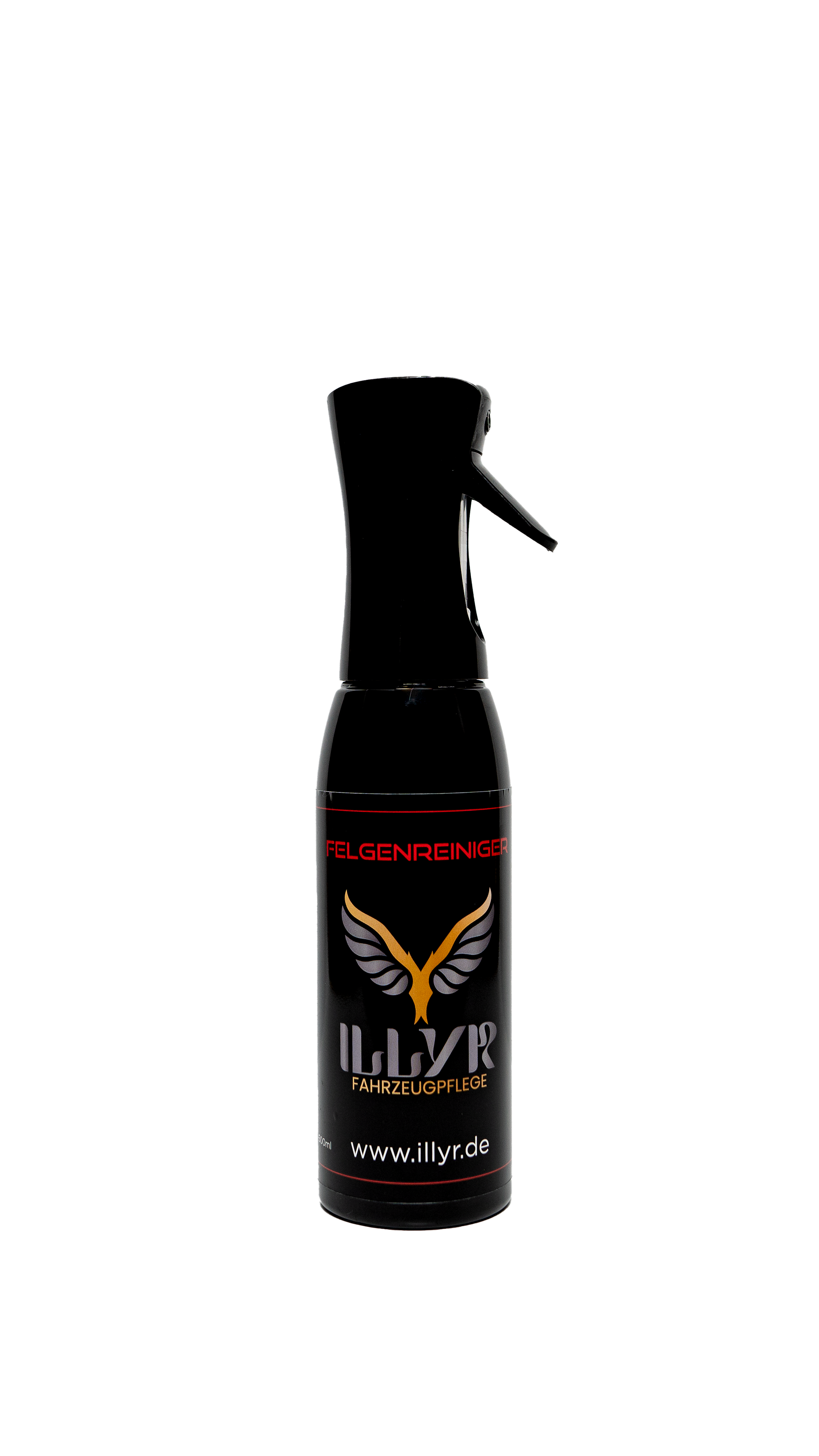 Verwöhnen Sie Ihre Felgen mit Illyr Fahrzeugpflege!  Unser neuer, säurefreier Felgenreiniger entfernt mühelos hartnäckigen Bremsstaub, Schmutz und Insektenreste, ohne Ihre Felgenoberfläche zu beschädigen.  Die innovative Formel ist besonders schonend zu Lack, Klarlack und allen gängigen Felgenmaterialien wie Aluminium, Chrom und Stahl da sie Säurefrei ist.